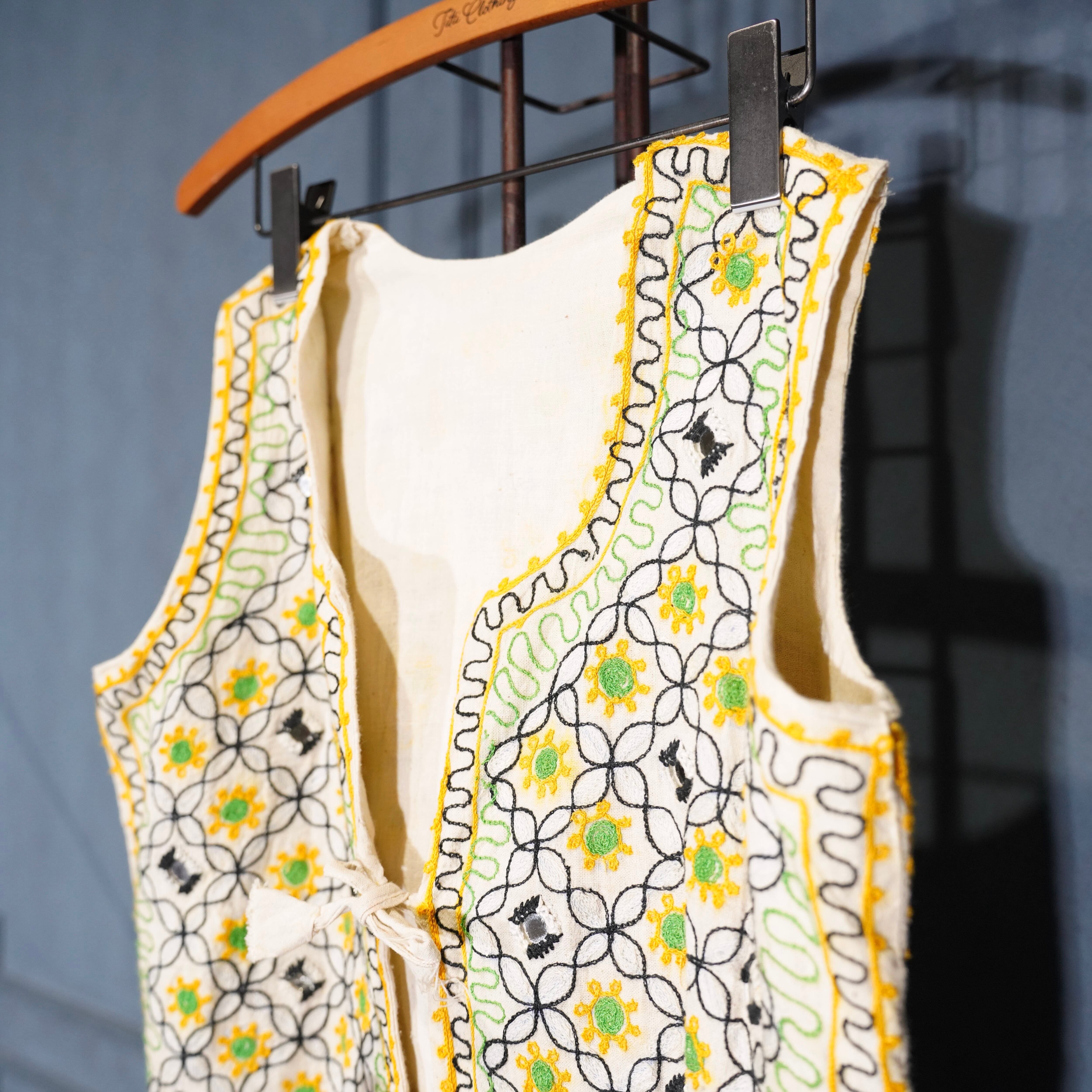 *SPECIAL ITEM* USA VINTAGE MIRRORWORK HAND EMBROIDERY DESIGN VEST/アメリカ古着ミラーワークハンド刺繍デザインベスト